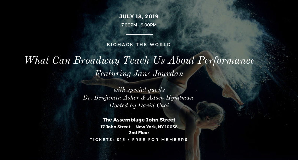 What Can Broadway Teach Us About Performance. Looking at biohacking through the lens of a Broadway performer, featuring Jane Jourdan (founder of Fit for Broadway), Dr. Benjamin Asher, performing artist Adam Hyndman, and hosted by technologist David Choi.